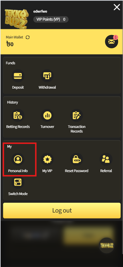 Step 1: Log in to your Tekkabuzz account. Select “Profile” > “Personal Info”.
