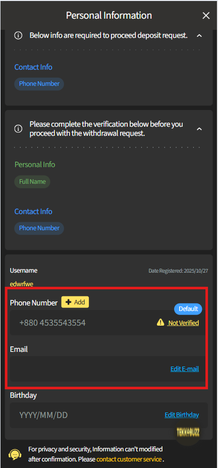 You are required to verify your email address, phone number and update your date of birth before you can submit any withdrawal requests. To verify your account,