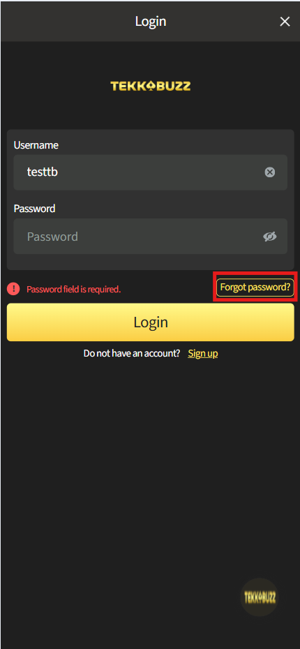 Step 1: Click on the ‘Login’ button on the Tekkabuzz homepage and select ‘Forgot Password”.