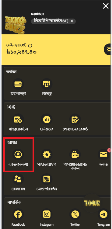 ধাপ 1: আপনার Tekkabuzz অ্যাকাউন্টে লগ ইন করুন। “প্রোফাইল”> “ব্যক্তিগত তথ্য” নির্বাচন করুন।