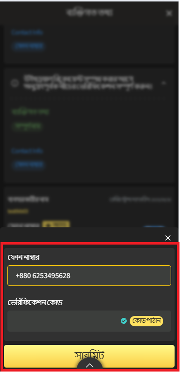 ধাপ 2: আপনার ফোন নম্বরটির পাশে “নট ভেরিফাইড” বাটন টি সিলেক্ট করুন। ‘ভেরিফাই’ এ ক্লিক করুন এবং ওটিপি কোডটি আপনাকে এসএমএসের মাধ্যমে দেয়া হবে এবং ৫ মিনিট পরে এসএমএস টির মেয়াদ শেষ হয়ে যাবে। এরপরে উল্লেখিত কলামে ওটিপি কোড লিখুন এবং “সাবমিট” ক্লিক করুন।